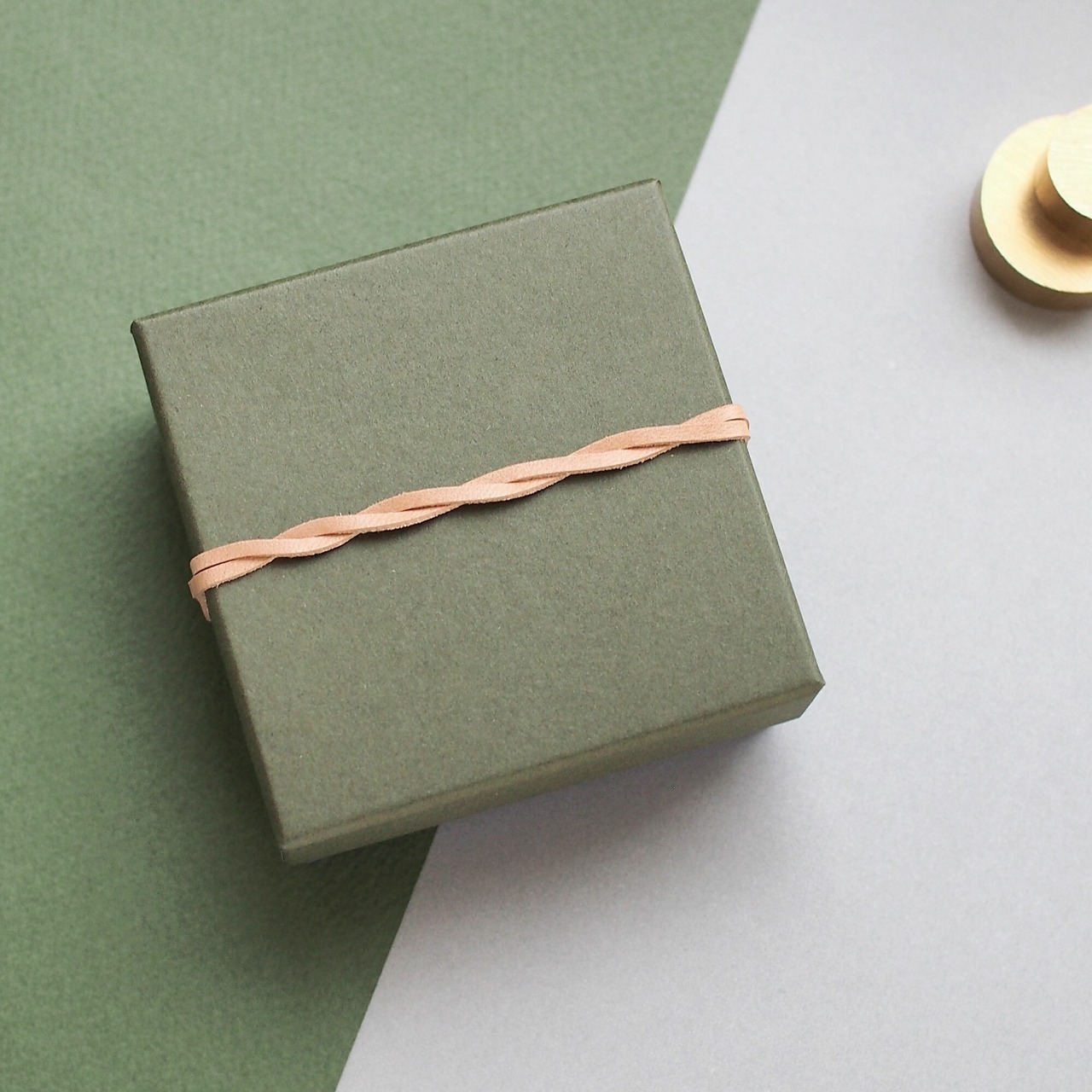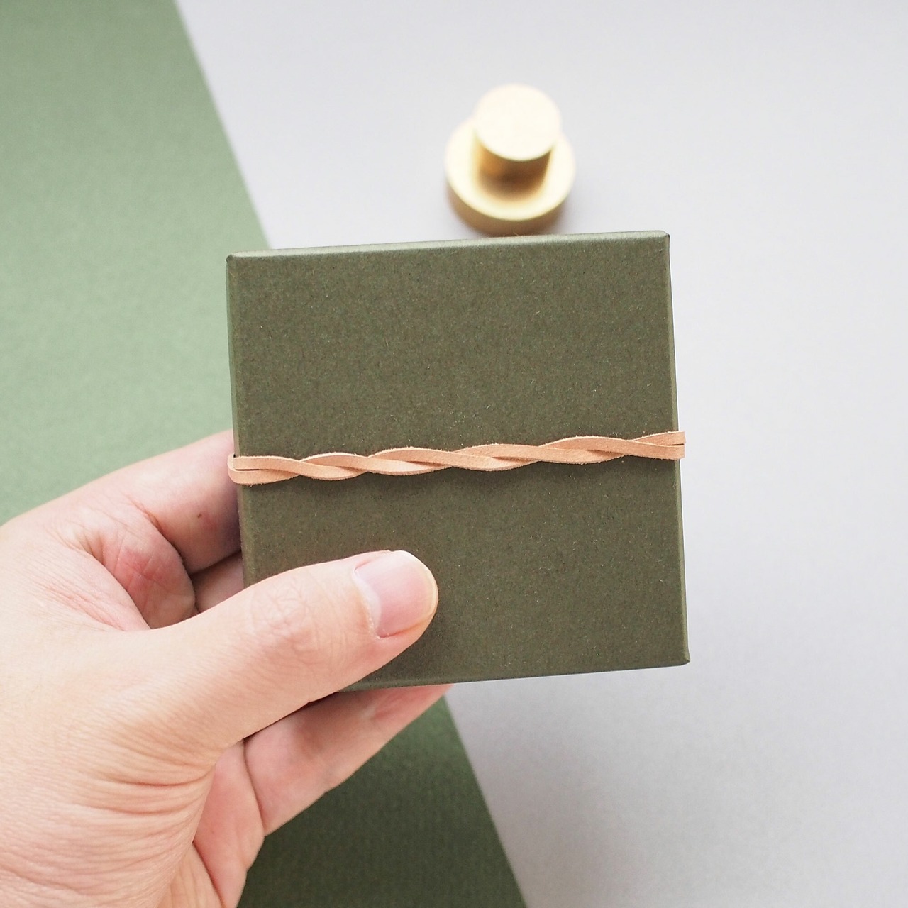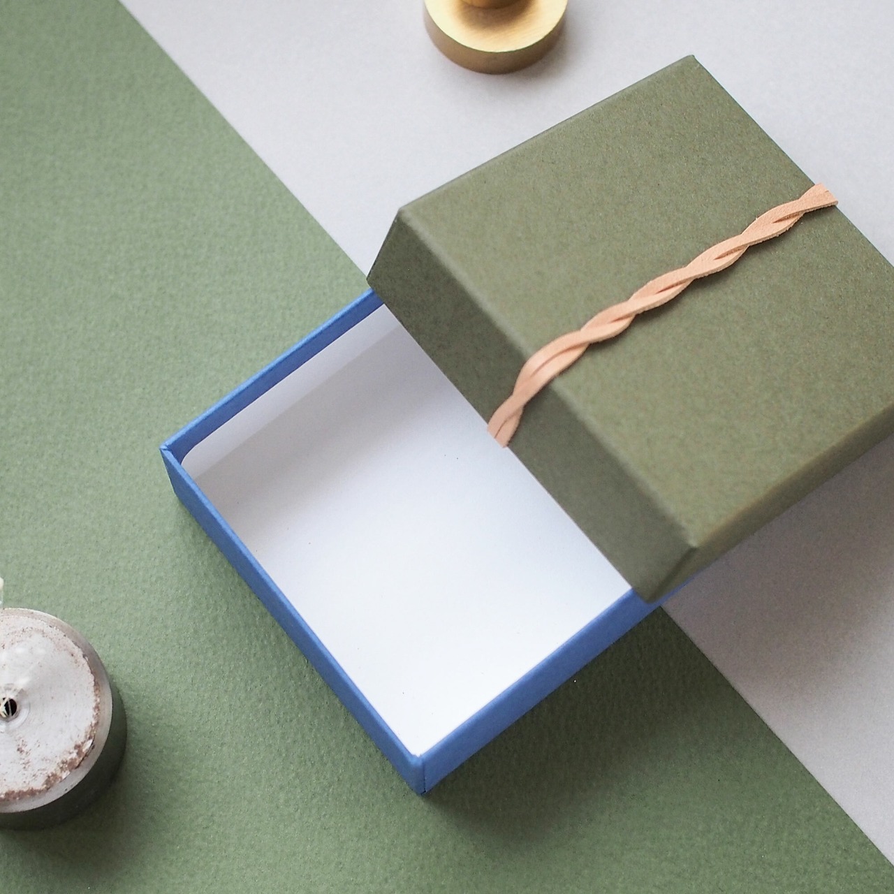 カーキとブルーを組み合わせたシックな雰囲気の小さな箱です。
