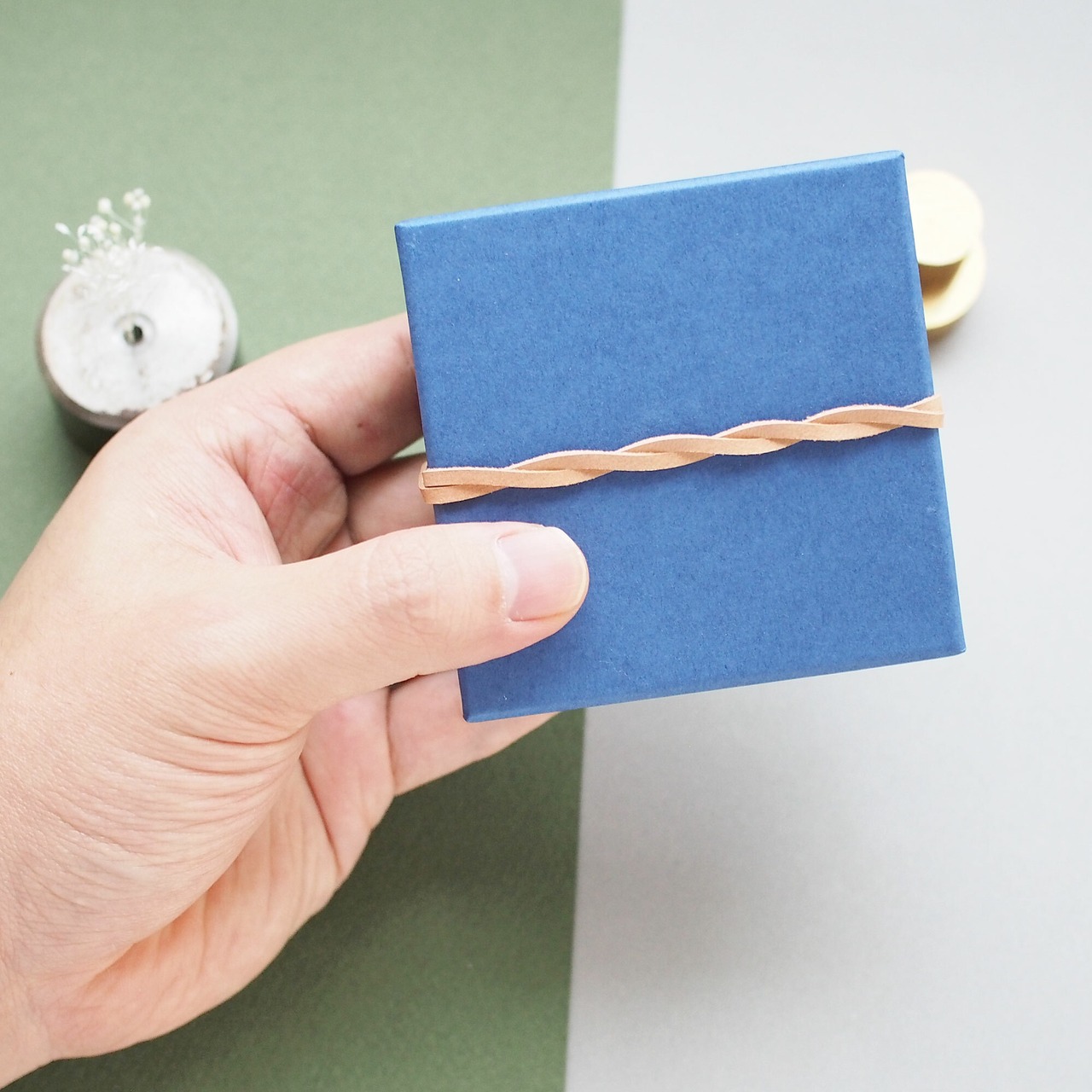 ブルーとカーキを組み合わせたシックな雰囲気の小さな箱です。